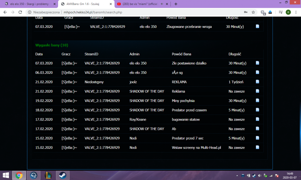 Data zdarzenia: 14;12 07.03.2020 Nick gracza: elo elo 350 Dowody: Właśnie to ja bym chciał tu dowód od admina elo elo Świadkowie: brak Uzasadnienie: Gram sobie poprostu i jakos w 5 minucie mapy de_mirage dostałem perk tajemnice serwera i grałem tak przez całą mapke i przed końcem mapy zostało 15 sekund admin elo elo do mnie - seba przebranie wroga albo wychodzisz z serwera albo ban pytam sie ciebie kurde jak ja miałem to zbugować i czym nie moja wina ze mi sie to samo zrobiło a ty mnie ukarałeś banem na 30 minut człowieku i sie nie mądruj tak na serwerze koleś. Naprawcie te bugi bo ja nic nie zrobiłem tajemnice miałem od 5 minuty mapy i sobie na niej grałem i zabijałem a ten mi wyjezdza z takim tekstem czlowieku.. Mówie do niego ze ja tego nie zbugowałem tego ze to mi sie samo tak zrobiłem a on nonszalancko przez mikrofon do mnie " noi co i tak cie zbanuje" "wyjebane mam" ty kurde jaki przykład dajesz? jak massz wyjebane to nie adminuj i tyle z mojej strony PS. Chciałbym dodać jescze żę jakiś czas temu dostałem perma za podobną sytuacje z perkiem kameleon ktory wywalilem a model mi dalej został naszczęscie aquax był wyrozumiały i zdjął mi bana @elo elo 3501 punkt