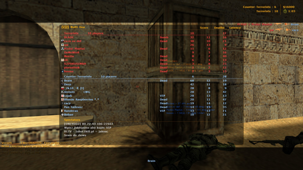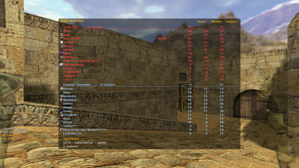Jeszcze dodam kilka słów o samym adminie, bo to co wyprawia jest śmieszne. Kiedy wchodził na serwer w ogóle nie zwracał uwagi na wyzwiska które leciały w moją stronę, a kilka razy zwracałem na to uwagę. Kiedy usłyszał że mam aima i speedhacka zrobił mi ss'y.