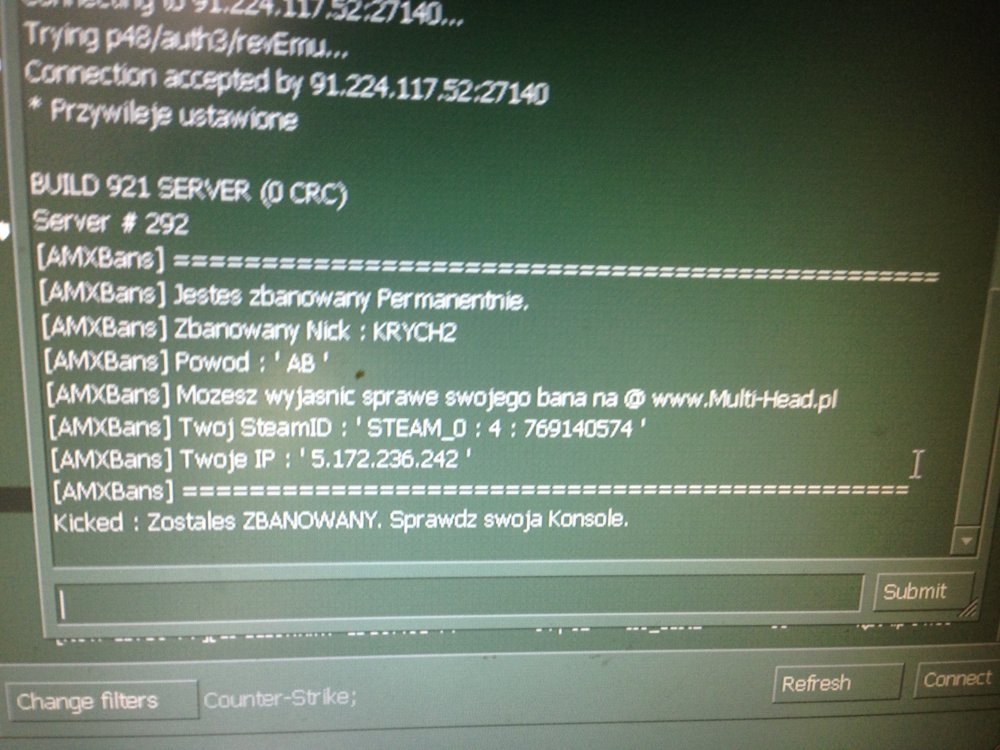 Uzasadnienie: dostałem bana ab na servezrze csgo#5 nie wiem za co ponieważ ani nie miałem wspomagaczy do strzelania ani nie miałem wh