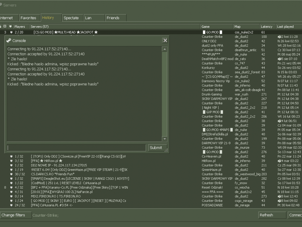 Zmieniłem bo pewien śmieszek musiał nałożyć hasło. Kicked :"Bledne haslo admina, wpisz poprawne haslo"