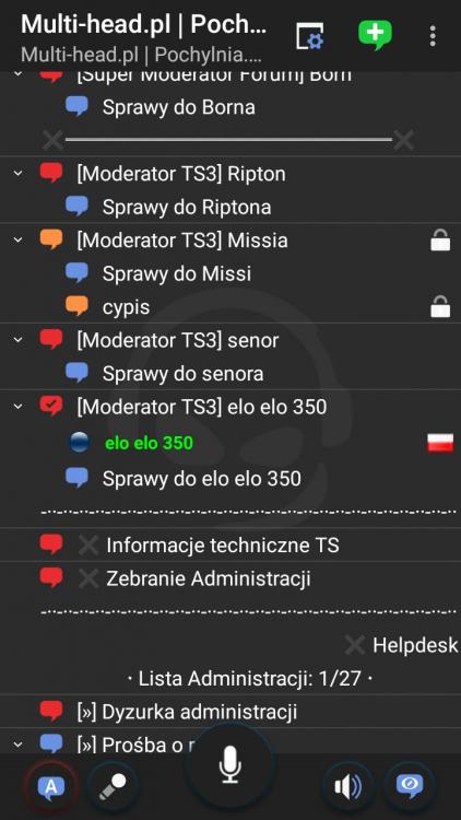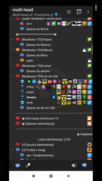 Nick z TS3: elo elo 350 Czas zaistniałej sytuacji: Cały czas Opis problemu + ewentualny dowód: Na ts3 na telefonie (android) nie mam pokazanych jakie kto ma rangi: powinno być tak: Thx @Wredna. A ja mam tak: Dodam też, że flagi sobie wlączylem w opcjach a wersja to 3.5.0
