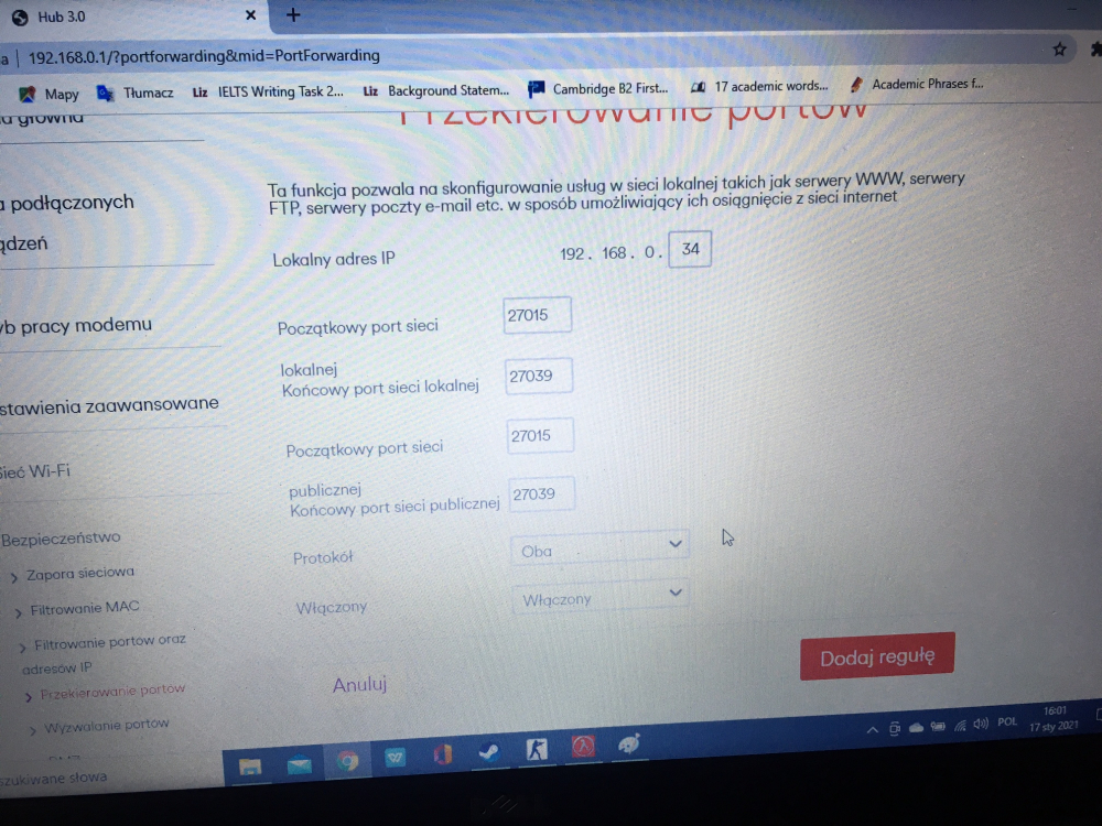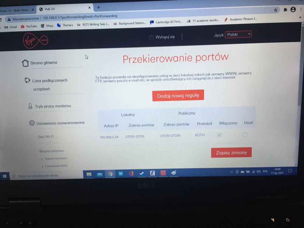 Witam serdecznie. W pierwszej kolejności wybaczcie, iż moim pierwszym postem jest prośba o pomoc aczkolwiek powoli doprowadza mnie to do szału. Mieszkam w UK i używam SkyHub, po latach naszła mnie ochota na odpalenie CS 1.6 i założenie własnego serwera. Pojawia się jednak problem - mianowicie mój serwer HLDS widoczny jest tylko w sieci LAN i nie mam zielonego pojęcia czym jest to spowodowane. W routerze porty odblokowane. Próbowałem na różne sposoby, wpierw tylko 27015 później 27019, aż doszedłem do wartości od 27015-27039 na oby dwa protokoły. Mimo tego serwer wciąż widoczny jest na Lanie, HLDS wciąż pokazuje IP Lanowe a przy próbie połączenia poprzez IP zewnętrzne CS pokazuje błąd. Czy wiecie może jak można to naprawić? Dołączam zdjęcia, może pomogą. Pozdrawiam serdecznie!