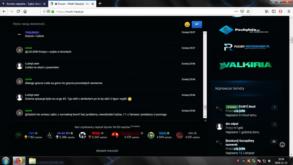 Nick cheat'era: #5/#8 i coś na #6 było gadane (ss) Godzina, data zdarzenia: 19:31-20:06/20:06-20:26 22.11.2018 Mapa: css_dust2x2 / css_dust2x2_go Serwer: cs:go #2 Link do demka: http://d1.hltv.org.pl/srv30939/HLTV-1811221931-css_dust2x2.dem.zip http://d1.hltv.org.pl/srv30939/HLTV-1811222006-css_dust2x2_go.dem.zip STEAM_ID/IP: #5/#8 i coś na #6 było gadane (ss) Uzasadnienie: szkoda strzępić ryja edit: bez adma to nwm czy ten serwer daleko zajdzie