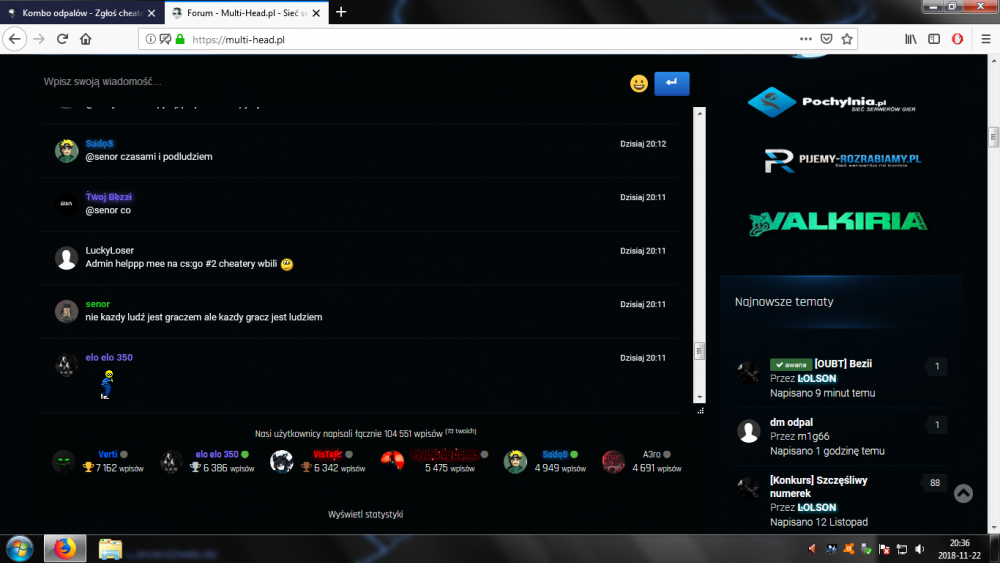 Nick cheat'era: 1. !Uwaga! !wchodze! VALVE_2:1:302882161 193.200.83.106 Nonsteam 2. Maciek lat 10 VALVE_2:1:135194193 156.67.121.162 Nonsteam Godzina, data zdarzenia: 21:27-22:19 23.11.2018 Mapa: css_dust2x2 Serwer: cs:go #2 Link do demka: http://d1.hltv.org.pl/srv30939/HLTV-1811232127-css_dust2x2.dem.zip STEAM_ID/IP: up Uzasadnienie: artefakty ci gracze posiadaja do wh i aimbota to jest dramat prosilem by nie zmieniac druzyn zeby mapa dobiegla konca to nie z 40min na demko czekac.. owszem racja moglem nagrac ale myslalem ze hltv wezme bo ledwo co bylo do konca mapy @Kyou