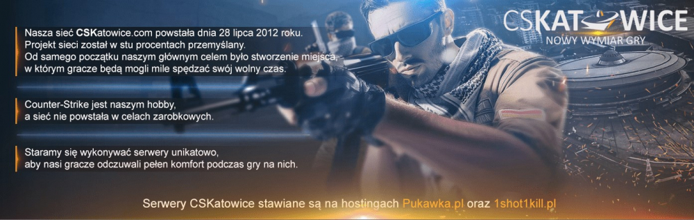 Chciałbym was zaprosić na jeden z najdłużej aktywnych serwerów typu PAINTBALL w Polsce (jeśli nie na świecie!), należący do sieci CsKatowice.com. Miejsce z wielką historią, niegdyś słynące z rozgrywek popularnych klanów, wypełnione graczami z niemal całej Europy 24/7, próbuje odzyskać obecnie swój dawny blask. Jeśli miałeś kiedyś styczność z niezwykle ciekawym trybem paintball lub dopiero chcesz spróbować swoich sił z najlepszymi graczami w Polsce, to wbijaj na CsKatowice! Jest to idealne miejsce dla ciebie jeśli: • szukasz klasycznej rozgrywki paintball bez zbędnych pluginów, • nie lubisz systemów pay2win (VIPy posiadające dużą przewagę), • masz ochotę wypróbować swojego skilla wśród najlepszych, • chcesz poczuć się częścią wielkiej, Counter-Strike'owej rodziny! Gwarantujemy rozgrywkę i zabawę na najwyższym poziomie! IP Serwera: 147.135.199.79:27015 -----------------------------------------------------------------------------