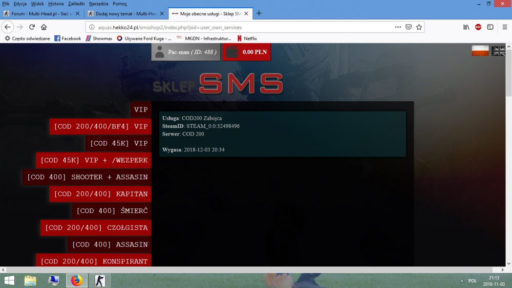 witam kupiłem klase premium zabojca na steam id po zmianach mapy nie dziala steam id : STEAM_0:0:32498496 nick w grze: ORMO