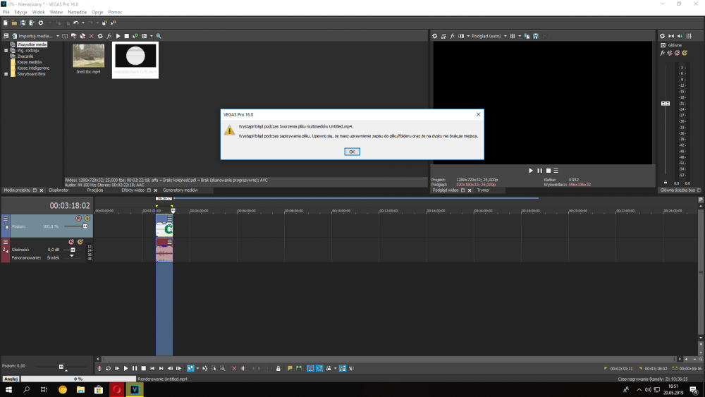 1. Czołem Próbując renderować film, przy samym końcu kiedy mam już 100% "renderacji" wyskakuje mi coś takiego (niżej zdjęcie) Podam jeszcze ścieżkę mojej renderacji plik->renderuj jako> sony avc/mvc> internet 1920 x 1080-30p Zaznaczę, że próbując renderować w sony vegasie 11 i 14 miałem to samo, nie mam pojęcia o co może chodzić - wujek google mi nie pomaga albo po prostu słabo szukam. Znajomy powiedział mi, że prawdopodobnie mam coś popsute jeżeli chodzi o uprawnienia, ale o co chodzi to nie ma pojęcia. Odpalałem program jako Administrator i gó**o pomaga xd liczę na pomoc, joł /edit jak coś to na dysku nie brakuje miejsca