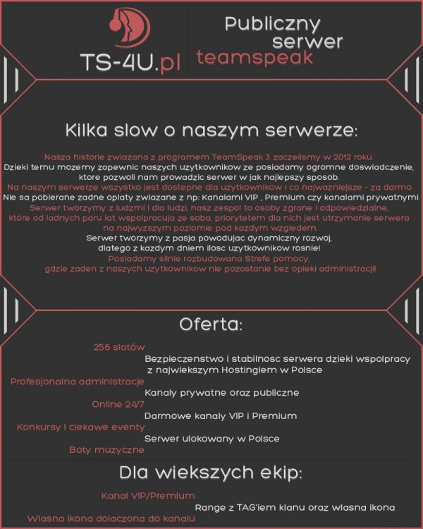 Zapraszam na nowo powstałego teamspeaka! Nie będę się tu rozpisywał, zresztą macie wszystko wyżej!
