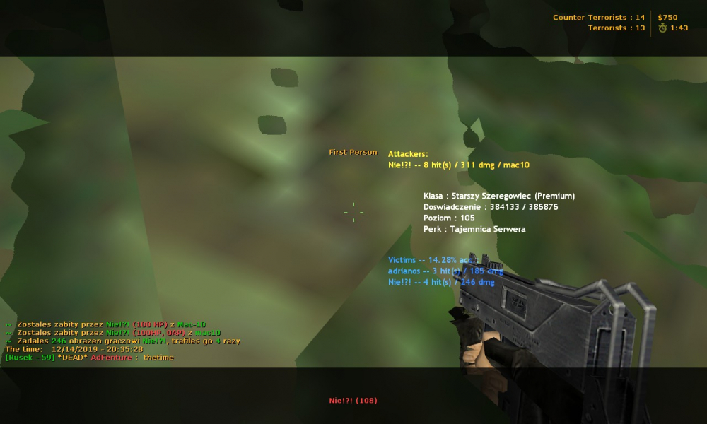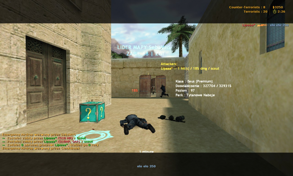 Nick cheat'era: Nie!?! SebaVHS Godzina, data zdarzenia: Mapa: Z Sebą to de_mini_train2 a z Nie!?! de_alexandra Serwer: COD 400 Link do demka: Ss niżej na Nie!?!, oraz https://www31.zippyshare.com/v/UOdGDqjB/file.html <-- Seba STEAM_ID/IP: Nie!?!: VALVE_1:0:804855028 Seba: VALVE_2:1:1280076176 Uzasadnienie: Seba użył autodestrukcji w 1:01, na demku widać, nie wolno używać perków w przed 7 sek A Nie!?! wchodzi na txt ;p